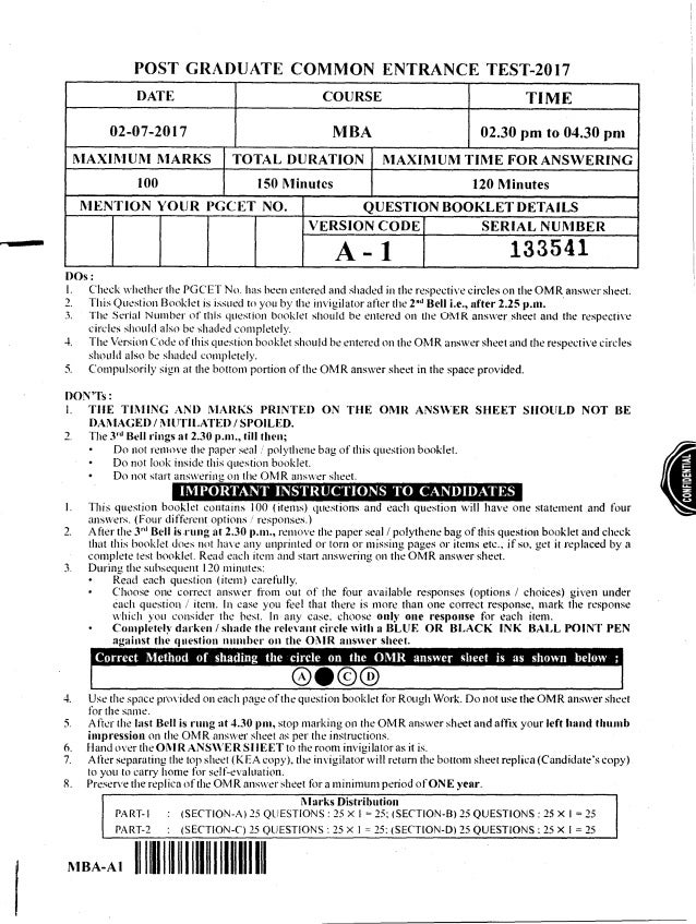 Pgcet Previous Question Papers For Mba 2020 2021 2022 Mba