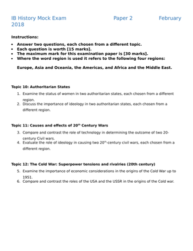 History Ib Mock Exam P1 P2 P3 Teaching Resources