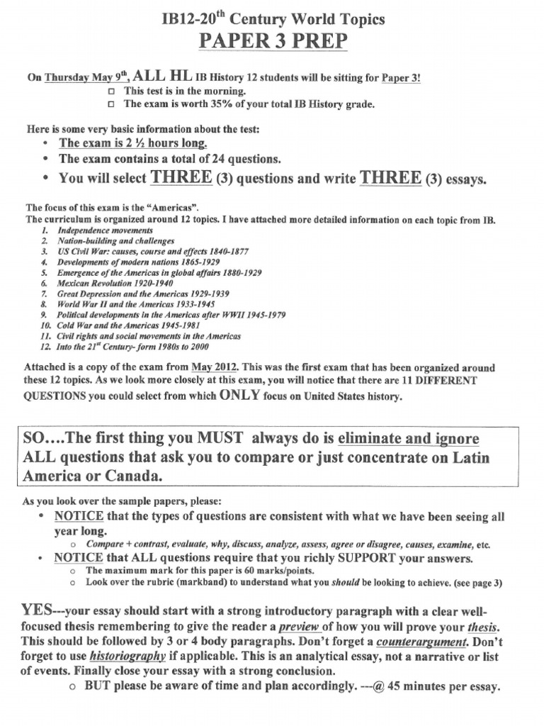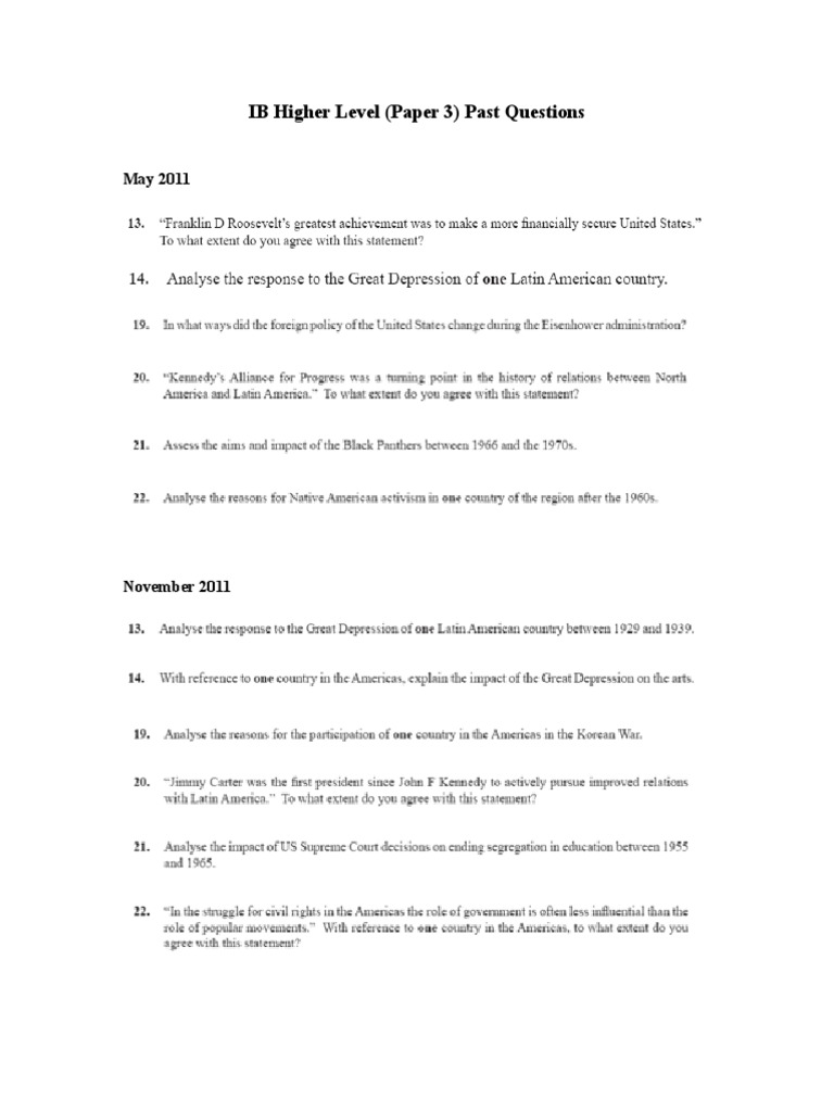 Access Free Ib History Hl Paper 3 Past Papers Sample essays - IB Survival Start studying IB History HL Paper 3. Past IBDP History Paper 3 Questions and Responses Specimen Paper III. The candidate identifies examples to discuss but these examples are factually incorrect irrelevant or vague.