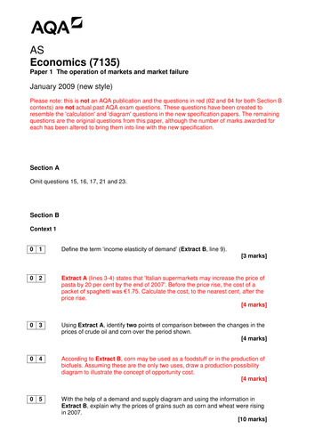 Aqa As Economics New Spec Additional Unit 1 Past Paper January 2009 Re Worked Teaching Resources